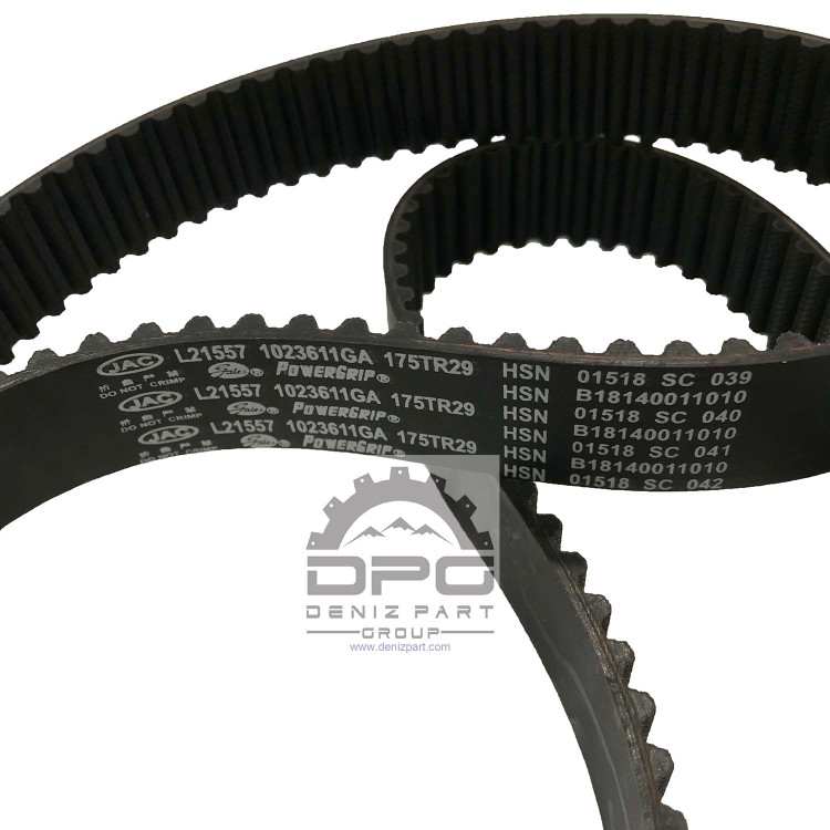 تسمه تایم برند گتس مدل 1023611GA مخصوص خودروی جک S5 دنده ای میباشد جنس این تسمه از نوع (Hydrogenated Nitrile Butadiene Rubber) HNBR که دارای مقاومت و دوام بالایی در هنگام کارکرد میباشد این تسمه ها وارداتی و ساخت کشور چین میباشد.