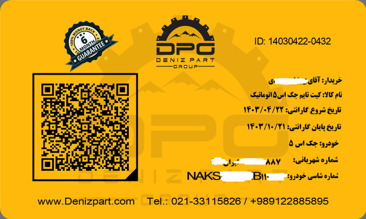 6 ماه گارانتی دنیزپارت از زمان خرید محصول