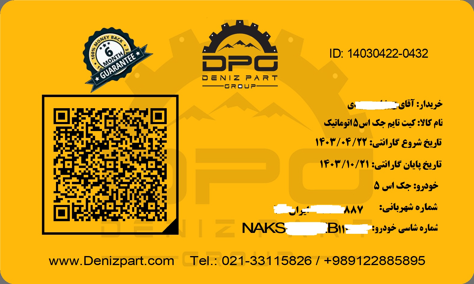 کیت تایم ساخت کشور چین میباشد و دارای 6 ماه ضمانت کتبی دنیزپارت (از زمان خرید- در فاکتور خرید درج می گردد) میباشد تا با خاطری آسوده نسبت به تهیه و تعویض کیت تایم خودروی خود اقدام نمایید.